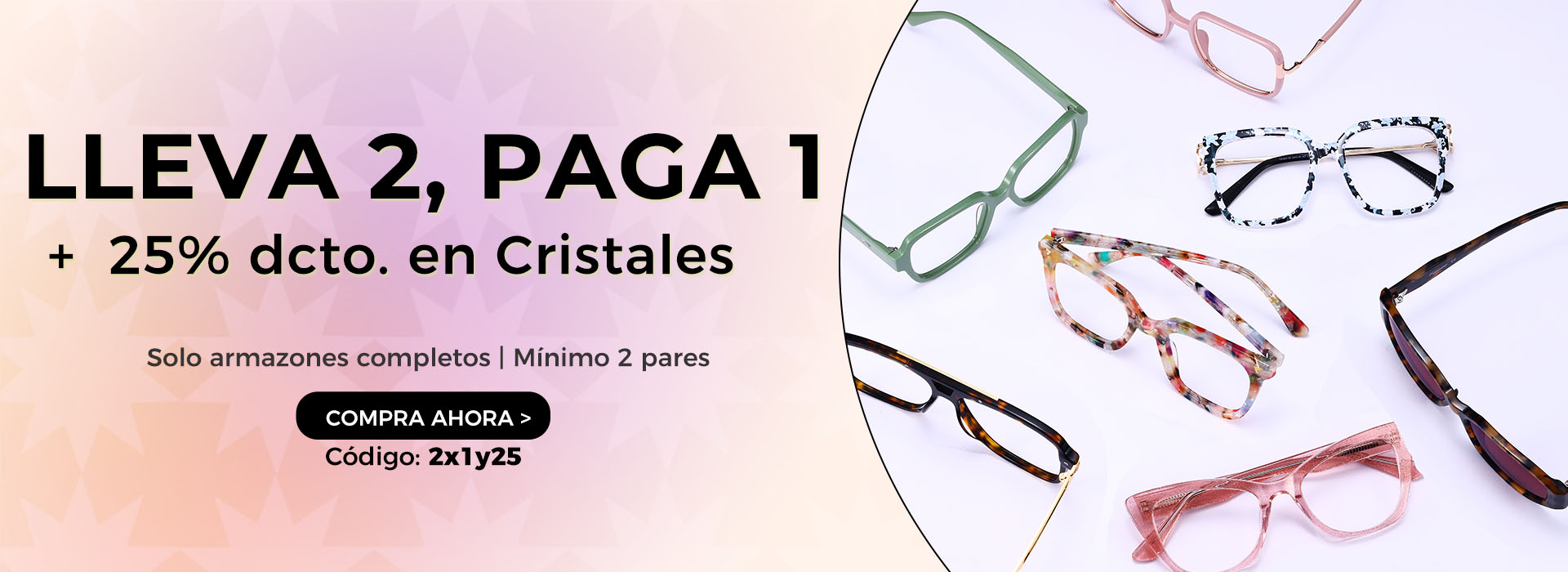 🎉 2x1 en armazones + 25% DCTO en cristales | Código: 2x1y25